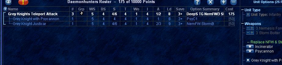 This explains the basics of the how "weapon options as new models" work, however the poster was noting costs which didn't quite jive with the above such as the costs actually being 5 points higher (when if using the first and second jpegs the difference in cost is 50, which would be expected, and when the number is reduced back to the "basic" formation, the actual increase for the weapon appears naturally as 25). Which is one reason why I'm hoping that this clear it up...